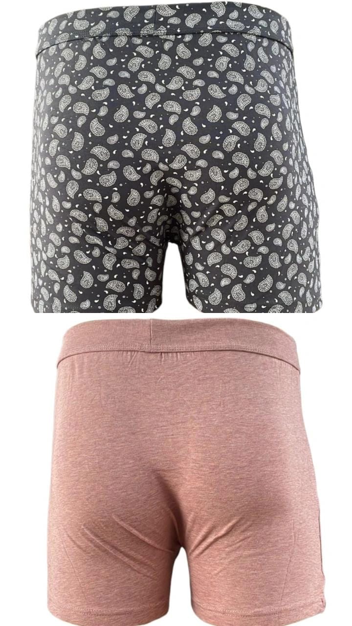 Este pack de 2 bóxers para hombre de la marca Abanderado combina lo mejor del estilo clásico con la comodidad diaria. Incluye un diseño liso en tono terracota y otro con estampado paisley en blanco sobre fondo negro. Fabricados con materiales suaves y elásticos, ofrecen un ajuste perfecto y máxima frescura durante todo el día. Ideales para quienes buscan confort con un toque de estilo.